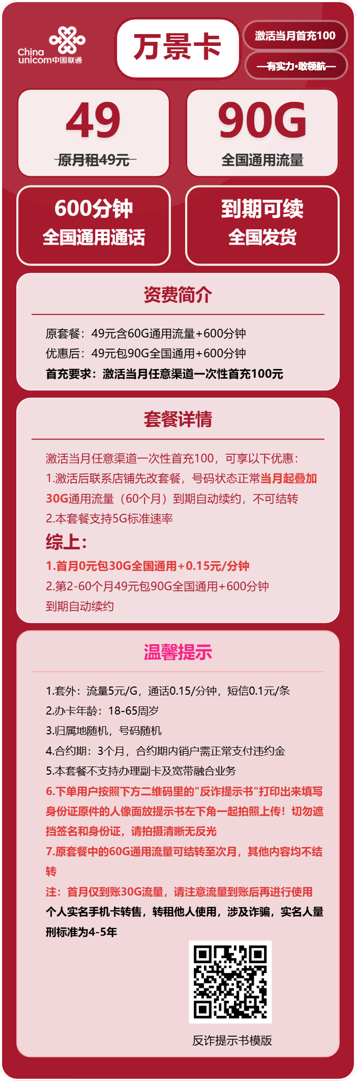 - 此卡只能本人使用,不能激活后卖给他人,涉诈涉扰最高判处三年有期徒刑